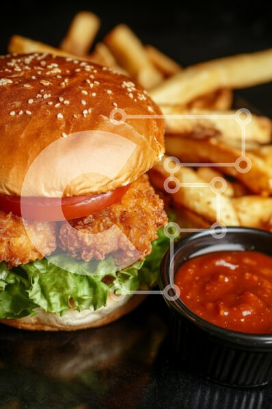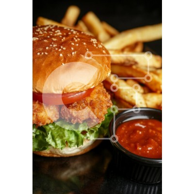 Υπάρχει δυνατότητα προσωποποίησης με δική σας φωτογραφία και προσαρμογής διαστάσεων κατόπιν παραγγελίας. Το συγεκεριμενο puzzle παρουσιαζει Αυτή η εικόνα παρουσιάζει ένα νόστιμο τηγανητό σάντουιτς κοτόπουλου με ένα κουλούρι σουσαμιού, τραγανό μαρούλι και μια φέτα ντομάτα. Το σάντουιτς συνοδεύεται από χρυσαφένιες τηγανητές πατάτες και ένα μικρό μπολ με σάλτσα ντιπ. Το σκηνικό είναι σκοτεινό, δίνοντας έμφαση στα ζωη