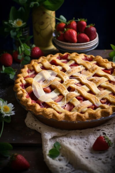 Υπάρχει δυνατότητα προσωποποίησης με δική σας φωτογραφία και προσαρμογής διαστάσεων κατόπιν παραγγελίας. Το συγεκεριμενο puzzle παρουσιαζει Η εικόνα παρουσιάζει μια νόστιμη φρέσκια πίτα φράουλας με περίπλοκα δικτυωτά πλέγματα τοποθετημένα πάνω από ένα παλιομοδίτικο πετσετάκι, δημιουργώντας μια ρουστίκ αίσθηση. Γύρω από την πίτα υπάρχουν μικρά λουλούδια σε γλάστρες, που υποδηλώνουν τη φρεσκοφτιαγμένη καλοσύνη της.