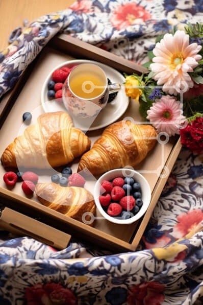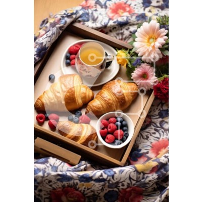Υπάρχει δυνατότητα προσωποποίησης με δική σας φωτογραφία και προσαρμογής διαστάσεων κατόπιν παραγγελίας. Το συγεκεριμενο puzzle παρουσιαζει Αυτή η εικόνα παρουσιάζει έναν όμορφα τακτοποιημένο δίσκο γεμάτο με κρουασάν, μούρα και λουλούδια. Στο κέντρο του δίσκου κάθεται ένα φλιτζάνι τσάι, που περιβάλλεται από μπολ με διάφορα φρούτα. Επιπλέον, υπάρχει μια κομψή διάταξη από κόκκινα τριαντάφυλλα που προσθέτει μια διακο