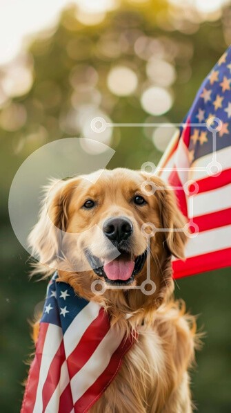 Υπάρχει δυνατότητα προσωποποίησης με δική σας φωτογραφία και προσαρμογής διαστάσεων κατόπιν παραγγελίας. Το συγεκεριμενο Puzzle 10x10 cm – 25 κομμ παρουσιαζει Η εικόνα δείχνει ένα σκυλί Golden Retriever που φορά χαρούμενα μια αμερικανική σημαία στο λαιμό του. Ο σκύλος εμφανίζεται χαρούμενος και γιορτινός, κρατώντας τη σημαία στο στόμα του και αποπνέοντας μια αίσθηση γιορτής για την 4η Ιουλίου. Η σ
