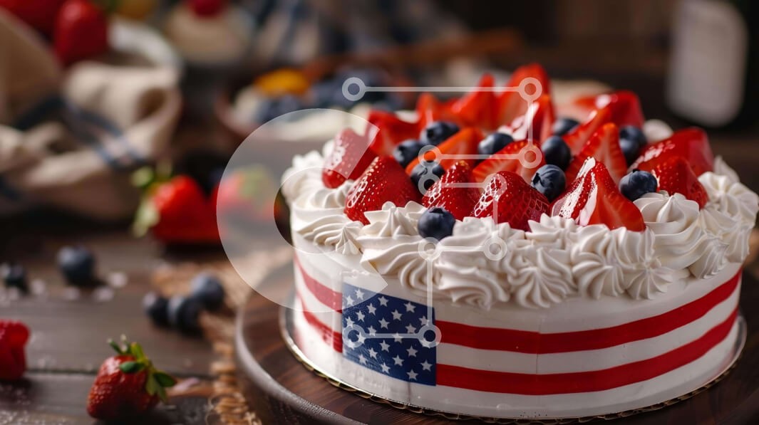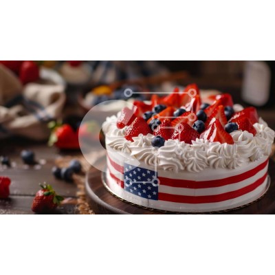 Υπάρχει δυνατότητα προσωποποίησης με δική σας φωτογραφία και προσαρμογής διαστάσεων κατόπιν παραγγελίας. Το συγεκεριμενο puzzle παρουσιαζει Η εικόνα δείχνει μια τούρτα με πατριωτικό θέμα, διακοσμημένη με σχέδιο αμερικανικής σημαίας και από πάνω φρέσκες φράουλες, βατόμουρα και σμέουρα. Το επιδόρπιο συνοδεύει ένα μπουκάλι κόκκινο κρασί, που υποδηλώνει μια γιορτή. Η σκηνή αποπνέει το πνεύμα της 4ης Ιουλίου με τα πατρ