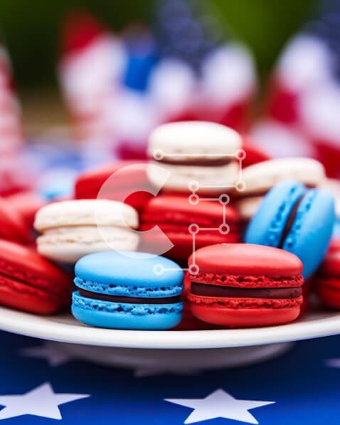 Υπάρχει δυνατότητα προσωποποίησης με δική σας φωτογραφία και προσαρμογής διαστάσεων κατόπιν παραγγελίας. Το συγεκεριμενο puzzle παρουσιαζει Αυτή η εικόνα παρουσιάζει ένα λευκό πιάτο με πολλά αμυγδαλωτά τοποθετημένα πάνω από ένα τραπεζομάντιλο με θέμα την αμερικανική σημαία. Τα αμυγδαλωτά έρχονται σε διάφορες κόκκινες, λευκές και μπλε γεύσεις, που αντιπροσωπεύουν τα πατριωτικά χρώματα της γιορτής της 4ης Ιουλίου. Α