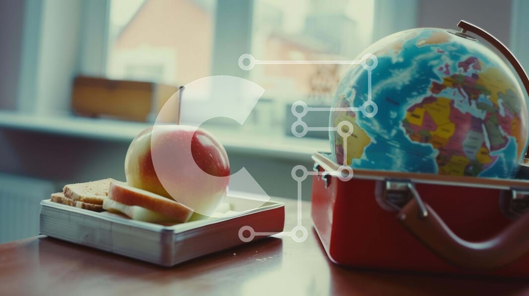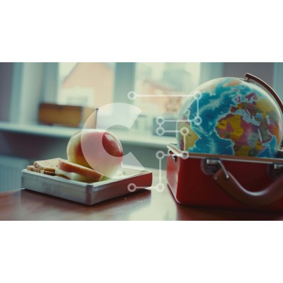 Υπάρχει δυνατότητα προσωποποίησης με δική σας φωτογραφία και προσαρμογής διαστάσεων κατόπιν παραγγελίας. Το συγεκεριμενο puzzle παρουσιαζει Η εικόνα παρουσιάζει έναν κόκκινο χαρτοφύλακα με ένα μήλο, κροτίδες και την παγκόσμια σφαίρα μέσα. Το μήλο τοποθετείται στην κορυφή της υδρογείου, η οποία φαίνεται από πολλές γωνίες. Επιπλέον, υπάρχουν διάφορα κομμάτια φρούτων διάσπαρτα γύρω από το δίσκο, όπως μήλα, σταφύλια,