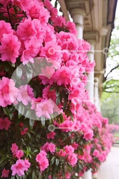 Υπάρχει δυνατότητα προσωποποίησης με δική σας φωτογραφία και προσαρμογής διαστάσεων κατόπιν παραγγελίας. Το συγεκεριμενο puzzle παρουσιαζει Η εικόνα δείχνει μια σειρά από ροζ λουλούδια αζαλέας που ανθίζουν δίπλα σε ένα παλιό κτίριο. Οι στήλες στο φόντο υποστηρίζουν τα ζωντανά λουλούδια, υποδεικνύοντας έναν καλοδιατηρημένο κήπο. Υποδηλώνει το άγγιγμα ενός λάτρη της κηπουρικής στη φύτευση και τη φροντίδα των λουλουδ