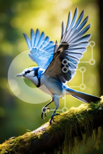 Υπάρχει δυνατότητα προσωποποίησης με δική σας φωτογραφία και προσαρμογής διαστάσεων κατόπιν παραγγελίας. Το συγεκεριμενο puzzle παρουσιαζει Αυτή η εικόνα δείχνει έναν μπλε τζάι σε πτήση, σκαρφαλωμένο σε ένα κλαδί με βρύα σε ένα δάσος. Τα φτερά του πουλιού απλώνονται, αποτυπώνοντας τη στιγμή της πτήσης. Το φόντο αποτελείται από δέντρα και φύλλωμα, με το ηλιακό φως να φιλτράρει μέσα από τα φύλλα. Ένα μοναδικό puzzl