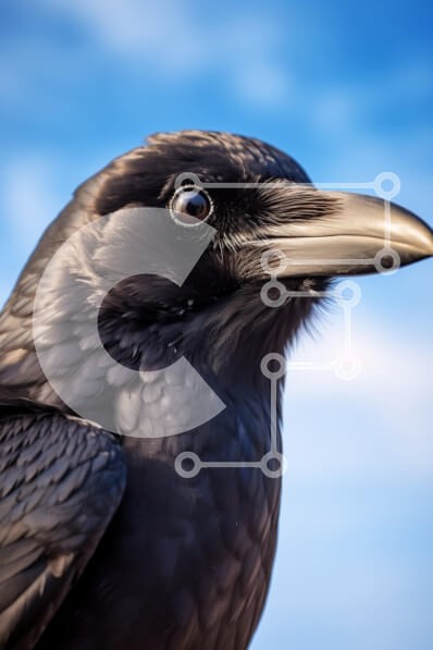 Υπάρχει δυνατότητα προσωποποίησης με δική σας φωτογραφία και προσαρμογής διαστάσεων κατόπιν παραγγελίας. Το συγεκεριμενο Puzzle 10x10 cm – 25 κομμ παρουσιαζει Αυτή η εικόνα παρουσιάζει ένα κοντινό πλάνο ενός κορακιού, που δείχνει τα γυαλιστερά μαύρα φτερά και το έντονο μάτι του. Το φόντο είναι ένας λαμπερός μπλε ουρανός, παρέχοντας μια έντονη αντίθεση με το σκούρο φτέρωμα του πουλιού. Η λεπτομερής