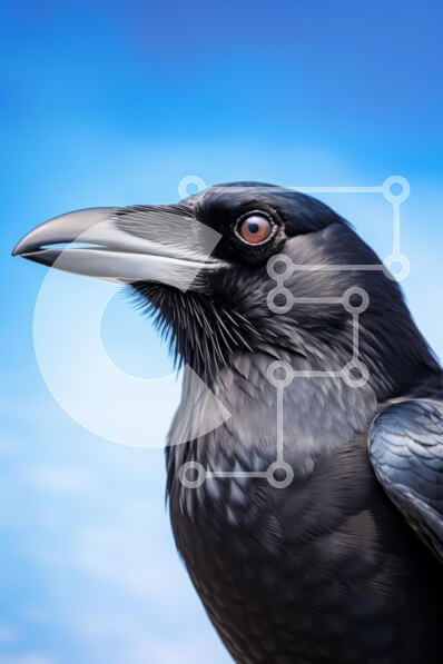 Υπάρχει δυνατότητα προσωποποίησης με δική σας φωτογραφία και προσαρμογής διαστάσεων κατόπιν παραγγελίας. Το συγεκεριμενο Puzzle 10x10 cm – 25 κομμ παρουσιαζει Αυτή η εικόνα παρουσιάζει ένα κοντινό πλάνο ενός κορακιού σε έναν γαλήνιο γαλάζιο ουρανό. Τα γυαλιστερά μαύρα φτερά του κορακιού λάμπουν στο φως, αναδεικνύοντας τις περίπλοκες λεπτομέρειες του. Το μάτι του πτηνού, μια εντυπωσιακή απόχρωση το