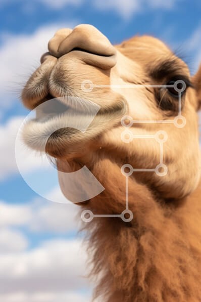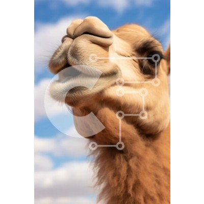 Υπάρχει δυνατότητα προσωποποίησης με δική σας φωτογραφία και προσαρμογής διαστάσεων κατόπιν παραγγελίας. Το συγεκεριμενο Puzzle 10x10 cm – 25 κομμ παρουσιαζει Η εικόνα καταγράφει ένα κοντινό πλάνο του προσώπου μιας καμήλας, δείχνοντας τα μοναδικά χαρακτηριστικά της σε φόντο γαλάζιου ουρανού με χνουδωτά σύννεφα. Το εκφραστικό στόμα και το μεγάλο σκούρο μάτι της καμήλας είναι εμφανή, με τη γούνα της