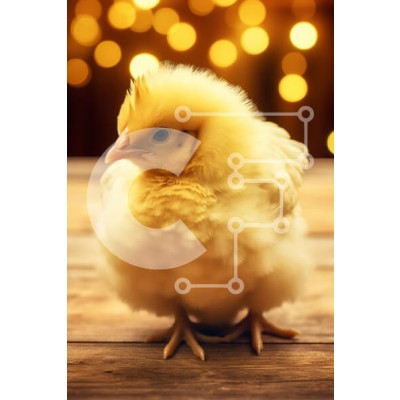 Υπάρχει δυνατότητα προσωποποίησης με δική σας φωτογραφία και προσαρμογής διαστάσεων κατόπιν παραγγελίας. Το συγεκεριμενο Puzzle 10x10 cm – 25 κομμ παρουσιαζει Αυτή η εικόνα παρουσιάζει ένα χνουδωτό κίτρινο νεοσσό που κάθεται σε μια ξύλινη επιφάνεια. Ο νεοσσός χαρακτηρίζεται από τα μαλακά, πουπουλένια φτερά του και μια μικρή κορυφή στο κεφάλι του. Πίσω του, υπάρχουν θολά χρυσά φώτα bokeh που δημιου