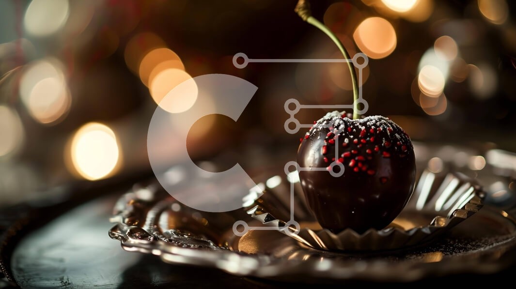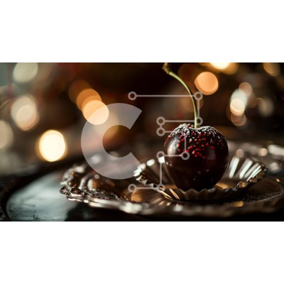 Υπάρχει δυνατότητα προσωποποίησης με δική σας φωτογραφία και προσαρμογής διαστάσεων κατόπιν παραγγελίας. Το συγεκεριμενο puzzle παρουσιαζει Αυτή η εικόνα παρουσιάζει ένα επιδόρπιο κεράσι από μαύρη σοκολάτα τοποθετημένο σε ένα περίτεχνο ασημένιο πιάτο, με φώτα που μοιάζουν με bokeh που δημιουργούν μια όμορφη ατμόσφαιρα. Πρόσθετα μικρά πιάτα και μπολ στο τραπέζι υποδηλώνουν την παρουσία άλλων απολαυστικών γλυκών που