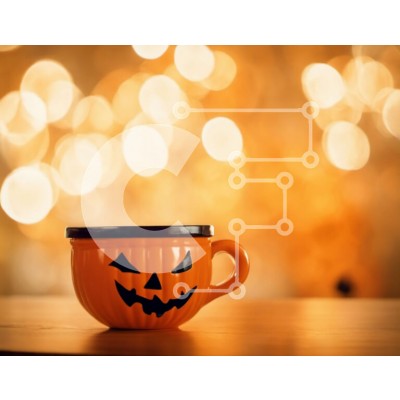 Υπάρχει δυνατότητα προσωποποίησης με δική σας φωτογραφία και προσαρμογής διαστάσεων κατόπιν παραγγελίας. Το συγεκεριμενο puzzle παρουσιαζει Αυτή η εικόνα παρουσιάζει ένα πορτοκαλί φλιτζάνι καφέ με πρόσωπο σε σχήμα κολοκύθας. Τοποθετείται πάνω από ένα τραπέζι μπροστά από πολύχρωμα φώτα bokeh, προσθέτοντας στη συνολική εορταστική ατμόσφαιρα. Άλλα αντικείμενα που υπάρχουν στην εικόνα περιλαμβάνουν πιάτα, χαρτοπετσέτε