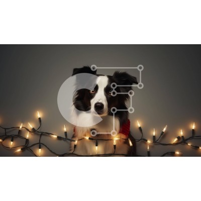 Υπάρχει δυνατότητα προσωποποίησης με δική σας φωτογραφία και προσαρμογής διαστάσεων κατόπιν παραγγελίας. Το συγεκεριμενο Puzzle 10x10 cm – 25 κομμ παρουσιαζει Αυτή η εικόνα παρουσιάζει έναν ασπρόμαυρο σκύλο Border Collie που κάθεται στη μέση μιας διάταξης χριστουγεννιάτικων λαμπτήρων. Ο σκύλος φαίνεται να κοιτάζει την κάμερα, επιδεικνύοντας περιέργεια ή απόλαυση της περιόδου των διακοπών. Τα ζωηρά