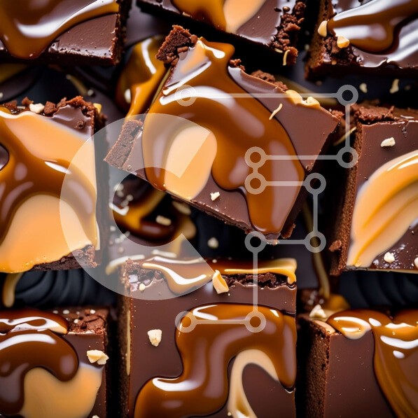 Υπάρχει δυνατότητα προσωποποίησης με δική σας φωτογραφία και προσαρμογής διαστάσεων κατόπιν παραγγελίας. Το συγεκεριμενο puzzle παρουσιαζει Αυτή η κοντινή φωτογραφία παρουσιάζει πολλά φρεσκοψημένα μπράουνις σοκολάτας με γυαλιστερή σάλτσα καραμέλας. Τα μπράουνις κόβονται σε τετράγωνα και τακτοποιούνται σε μαύρη επιφάνεια, δημιουργώντας μια οπτικά ελκυστική σύνθεση. Τα σκούρα και πλούσια χρώματα της σοκολάτας και τη