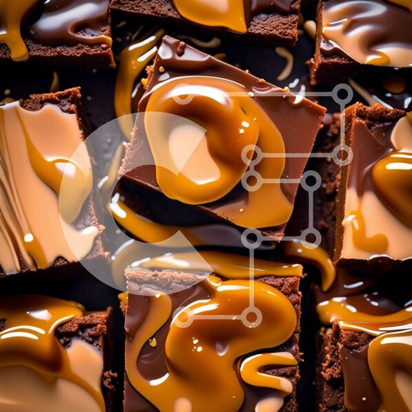 Υπάρχει δυνατότητα προσωποποίησης με δική σας φωτογραφία και προσαρμογής διαστάσεων κατόπιν παραγγελίας. Το συγεκεριμενο puzzle παρουσιαζει Αυτή η εικόνα παρουσιάζει μια κοντινή άποψη πολλών μπράουνι σοκολάτας με μια ψιλή λεία σάλτσα καραμέλας. Τα μπράουνις φρεσκοψήνονται και κόβονται σε τετράγωνα, ακουμπισμένα σε σκούρα επιφάνεια. Ο φωτισμός είναι έντονος, αναδεικνύοντας τη γυαλιστερή εμφάνιση της σάλτσας καραμέλ