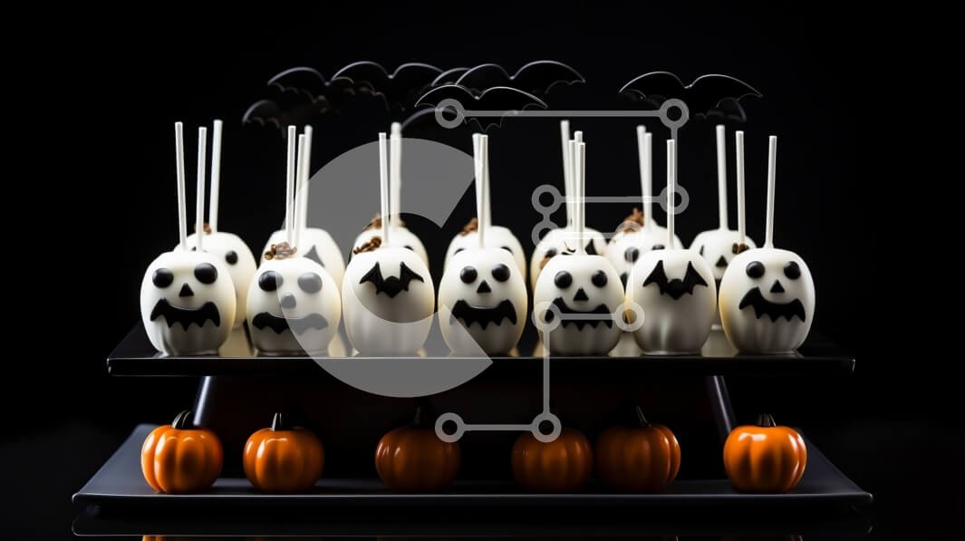 Υπάρχει δυνατότητα προσωποποίησης με δική σας φωτογραφία και προσαρμογής διαστάσεων κατόπιν παραγγελίας. Το συγεκεριμενο puzzle παρουσιαζει Αυτή η εικόνα παρουσιάζει μια επίδειξη κέικ με θέμα το Halloween. Τα cake pops είναι διακοσμημένα με σχέδια κολοκύθας και νυχτερίδας, προσθέτοντας μια γιορτινή πινελιά στο γλυκό. Οι οδοντογλυφίδες είναι επίσης ορατές πάνω από τα κέικ, οι οποίες μπορούν να χρησιμοποιηθούν για σ