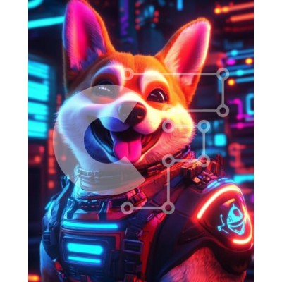 Υπάρχει δυνατότητα προσωποποίησης με δική σας φωτογραφία και προσαρμογής διαστάσεων κατόπιν παραγγελίας. Το συγεκεριμενο Puzzle 10x10 cm – 25 κομμ παρουσιαζει Η εικόνα παρουσιάζει μια ζωντανή, φουτουριστική απεικόνιση ενός καρτούν corgi με μια χαρούμενη έκφραση. Το corgi φορά ένα κοστούμι υψηλής τεχνολογίας διακοσμημένο με λαμπερά μπλε και κόκκινα φώτα, σε ένα πολύχρωμο νέον φόντο γεμάτο με αφηρημ