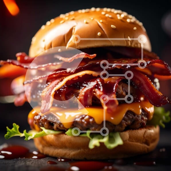 Υπάρχει δυνατότητα προσωποποίησης με δική σας φωτογραφία και προσαρμογής διαστάσεων κατόπιν παραγγελίας. Το συγεκεριμενο puzzle παρουσιαζει Αυτή η εικόνα παρουσιάζει ένα λαχταριστό cheeseburger μπέικον. Το μπιφτέκι στρώνεται με τραγανό μπέικον, λιωμένο τυρί και από πάνω κέτσαπ. Παρουσιάζεται σε σκούρο φόντο, δημιουργώντας μια οπτικά ελκυστική αντίθεση. Το μπιφτέκι είναι τέλεια μαγειρεμένο και σίγουρα θα ικανοποιήσ