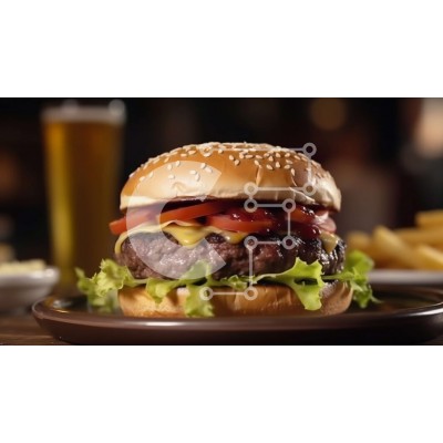 Υπάρχει δυνατότητα προσωποποίησης με δική σας φωτογραφία και προσαρμογής διαστάσεων κατόπιν παραγγελίας. Το συγεκεριμενο puzzle παρουσιαζει Αυτή η εικόνα παρουσιάζει ένα λαχταριστό cheeseburger σε ένα μαλακό ψωμάκι με φρέσκο μαρούλι, ώριμη ντομάτα και αψιά κέτσαπ. Στο βάθος, υπάρχουν τραγανές τηγανητές πατάτες, που προσθέτουν στη συνολική νοστιμιά του γεύματος. Ένα μοναδικό puzzle που συνδυάζει ποιότητα, αισθητ