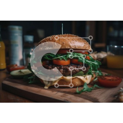 Υπάρχει δυνατότητα προσωποποίησης με δική σας φωτογραφία και προσαρμογής διαστάσεων κατόπιν παραγγελίας. Το συγεκεριμενο puzzle παρουσιαζει Αυτή η εικόνα απαθανατίζει ένα νόστιμο cheeseburger με μαρούλι, ντομάτα και κέτσαπ σε μια ξύλινη σανίδα. Το μπιφτέκι είναι φρεσκομαγειρεμένο με ζουμερό κρέας και τα toppings είναι τραγανά και φρέσκα. Η ξύλινη σανίδα προσθέτει μια ρουστίκ πινελιά στην εικόνα. Ένα μοναδικό puzz