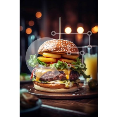Υπάρχει δυνατότητα προσωποποίησης με δική σας φωτογραφία και προσαρμογής διαστάσεων κατόπιν παραγγελίας. Το συγεκεριμενο puzzle παρουσιαζει Αυτή η εικόνα παρουσιάζει ένα νόστιμο cheeseburger με φρέσκο μαρούλι και ντομάτα, συνοδευόμενο από τραγανές χρυσαφένιες τηγανητές πατάτες. Το γεύμα τοποθετείται σε ένα ρουστίκ ξύλινο τραπέζι, που βρίσκεται μπροστά από ένα μεγάλο παράθυρο με εκπληκτική θέα στην πόλη τη νύχτα.