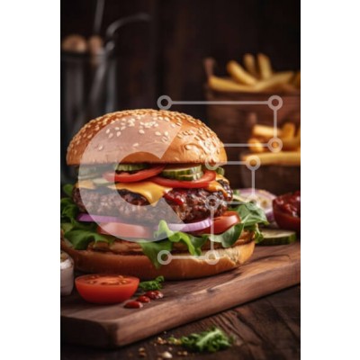 Υπάρχει δυνατότητα προσωποποίησης με δική σας φωτογραφία και προσαρμογής διαστάσεων κατόπιν παραγγελίας. Το συγεκεριμενο puzzle παρουσιαζει Αυτή η εικόνα παρουσιάζει ένα cheeseburger με μαρούλι και ντομάτα, σερβιρισμένο με τηγανιτές πατάτες σε ένα ρουστίκ ξύλινο τραπέζι. Το μπιφτέκι είναι καλοψημένο και ζουμερό, με λιωμένο τυρί να αναβλύζει, ενώ οι πατάτες είναι τραγανές και χρυσοκάστανες. Το πράσινο μαρούλι και η
