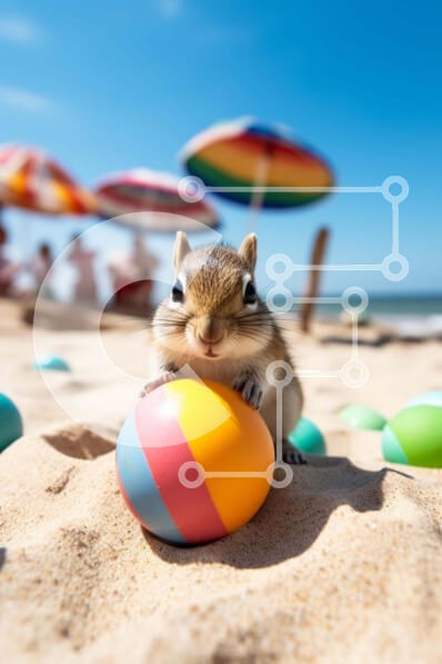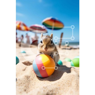 Υπάρχει δυνατότητα προσωποποίησης με δική σας φωτογραφία και προσαρμογής διαστάσεων κατόπιν παραγγελίας. Το συγεκεριμενο puzzle παρουσιαζει Η εικόνα δείχνει ένα παιχνιδιάρικο chipmunk που αλληλεπιδρά με ένα πασχαλινό αυγό στο περιβάλλον της αμμώδους παραλίας. Αρκετές ομπρέλες είναι ορατές, υπονοώντας μια υπαίθρια γιορτή. Πολύχρωμες μπάλες σκορπισμένες τριγύρω υποδηλώνουν συμμετοχή σε μια εκδήλωση με θέμα το Πάσχα.