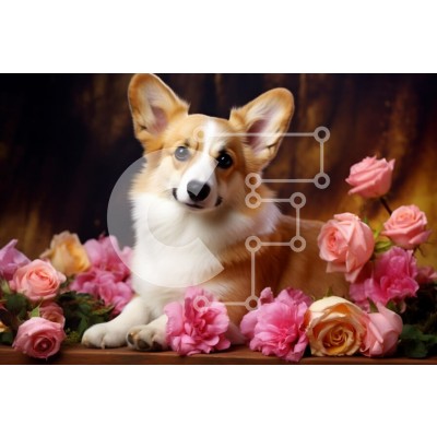 Υπάρχει δυνατότητα προσωποποίησης με δική σας φωτογραφία και προσαρμογής διαστάσεων κατόπιν παραγγελίας. Το συγεκεριμενο Puzzle 10x10 cm – 25 κομμ παρουσιαζει Η εικόνα απεικονίζει έναν σκύλο κοργκί που ποζάρει κομψά ανάμεσα σε μια ποικιλία από πολύχρωμα λουλούδια, όπως τριαντάφυλλα και παιώνιες. Η γούνα του σκύλου είναι ένα μείγμα από πορτοκαλί και λευκό, και τα αυτιά του είναι ψηλά, δίνοντάς του