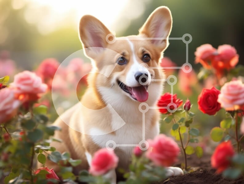 Υπάρχει δυνατότητα προσωποποίησης με δική σας φωτογραφία και προσαρμογής διαστάσεων κατόπιν παραγγελίας. Το συγεκεριμενο Puzzle 10x10 cm – 25 κομμ παρουσιαζει Ένα χαρούμενο corgi κάθεται ανάμεσα σε ανθισμένα τριαντάφυλλα σε έναν κήπο, με τον ήλιο να λάμπει απαλά στο βάθος. Η γούνα του σκύλου είναι ένα ζεστό μαύρισμα με λευκές πινελιές και έχει μεγάλα αυτιά που ξεχωρίζουν. Τα ζωηρά κόκκινα και ροζ