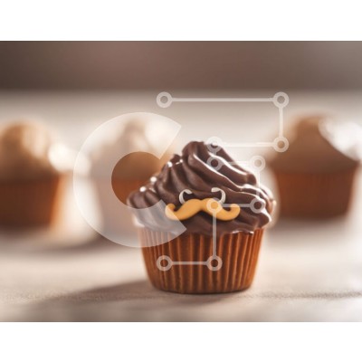Υπάρχει δυνατότητα προσωποποίησης με δική σας φωτογραφία και προσαρμογής διαστάσεων κατόπιν παραγγελίας. Το συγεκεριμενο puzzle παρουσιαζει Αυτή η εικόνα παρουσιάζει ένα μονό cupcake διακοσμημένο με γλάσο σοκολάτας και ένα πορτοκαλί μουστάκι. Τοποθετείται σε ένα τραπέζι δίπλα σε πολλά άλλα cupcakes, μερικά από τα οποία στοιβάζονται το ένα πάνω στο άλλο. Ένα μικρό φλιτζάνι καφέ συνοδεύει τα cupcakes. Ένα μοναδικό