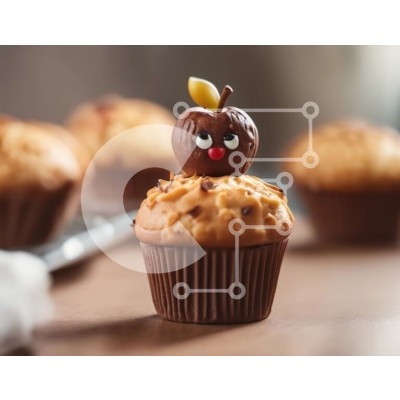 Υπάρχει δυνατότητα προσωποποίησης με δική σας φωτογραφία και προσαρμογής διαστάσεων κατόπιν παραγγελίας. Το συγεκεριμενο puzzle παρουσιαζει Αυτή η εικόνα παρουσιάζει ένα cupcake με διακόσμηση σε σχήμα μήλου από πάνω. Γύρω από το cupcake υπάρχουν μικρά μήλα σοκολάτας που μπορούν να χρησιμοποιηθούν ως πρόσθετα στολίδια. Περιλαμβάνεται επίσης ένα ψαλίδι, πιθανό για το σερβίρισμα ή το κόψιμο του cupcake. Ένα μοναδικό