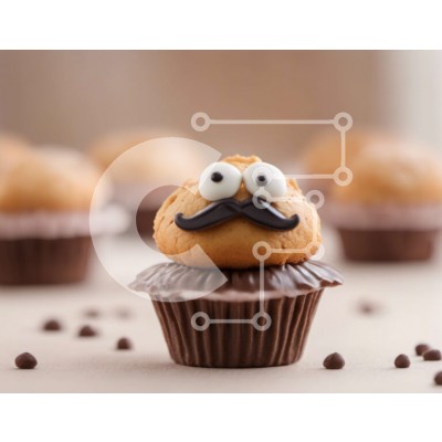Υπάρχει δυνατότητα προσωποποίησης με δική σας φωτογραφία και προσαρμογής διαστάσεων κατόπιν παραγγελίας. Το συγεκεριμενο puzzle παρουσιαζει Αυτή η εικόνα δείχνει ένα cupcake με βρώσιμο μουστάκι και κομματάκια σοκολάτας. Το cupcake τοποθετείται σε ένα τραπέζι που περιβάλλεται από άλλα cupcakes, δημιουργώντας μια απολαυστική διάταξη. Μικρά κομμάτια ζύμης μπισκότων σοκολάτας είναι επίσης ορατά, προσθέτοντας στη συνολ