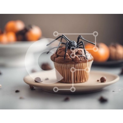 Υπάρχει δυνατότητα προσωποποίησης με δική σας φωτογραφία και προσαρμογής διαστάσεων κατόπιν παραγγελίας. Το συγεκεριμενο puzzle παρουσιαζει Αυτή η εικόνα παρουσιάζει ένα cupcake με θέμα το Halloween με μια βρώσιμη αράχνη από πάνω. Το cupcake τοποθετείται σε ένα πιάτο που περιβάλλεται από κολοκύθες και πορτοκάλια, δημιουργώντας μια γιορτινή ατμόσφαιρα. Στο βάθος, υπάρχουν μικρά κομμάτια σοκολάτας, υποδηλώνοντας την