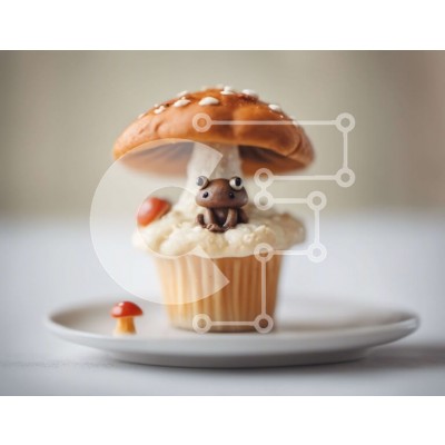 Υπάρχει δυνατότητα προσωποποίησης με δική σας φωτογραφία και προσαρμογής διαστάσεων κατόπιν παραγγελίας. Το συγεκεριμενο puzzle παρουσιαζει Αυτή η εικόνα παρουσιάζει ένα όμορφα διακοσμημένο cupcake με ένα αξιολάτρευτο μικρό αρκουδάκι να κάθεται πάνω από ένα μανιτάρι. Το cupcake τοποθετείται στο δικό του πιάτο σε πρώτο πλάνο. Υπάρχουν επίσης πολλά μικρά μανιτάρια που περιβάλλουν το cupcake, προσθέτοντας στην ιδιότρ