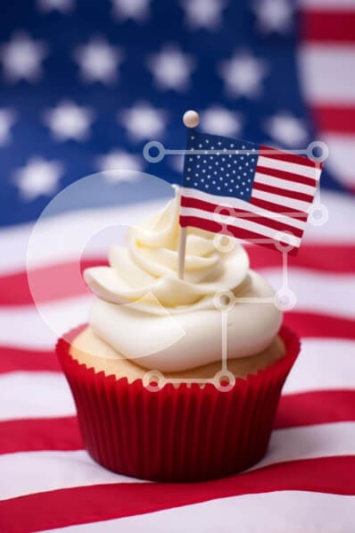 Υπάρχει δυνατότητα προσωποποίησης με δική σας φωτογραφία και προσαρμογής διαστάσεων κατόπιν παραγγελίας. Το συγεκεριμενο puzzle παρουσιαζει Η εικόνα εμφανίζει ένα cupcake με μια προεξέχουσα αμερικανική σημαία στην κορυφή, με φόντο πολλές αμερικανικές σημαίες. Το cupcake είναι παγωμένο σε λευκό χρώμα και η σημαία είναι ευδιάκριτη από διάφορες γωνίες. Είναι πιθανόν ένα εορταστικό κέρασμα για την 4η Ιουλίου, με πολλέ