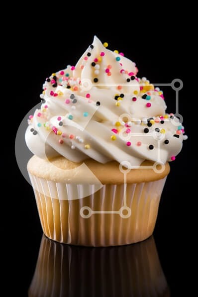 Υπάρχει δυνατότητα προσωποποίησης με δική σας φωτογραφία και προσαρμογής διαστάσεων κατόπιν παραγγελίας. Το συγεκεριμενο puzzle παρουσιαζει Αυτή η εικόνα παρουσιάζει ένα όμορφα διακοσμημένο cupcake με ένα γενναιόδωρο στροβιλισμό λευκού παγώματος στην κορυφή, διακοσμημένο με πολύχρωμα πασπαλίσματα σε αποχρώσεις του ροζ, του κίτρινου, του μαύρου και του μπλε. Το cupcake τοποθετείται σε ένα έντονο μαύρο φόντο, το οπο