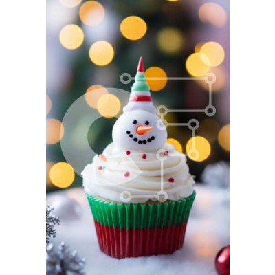 Υπάρχει δυνατότητα προσωποποίησης με δική σας φωτογραφία και προσαρμογής διαστάσεων κατόπιν παραγγελίας. Το συγεκεριμενο puzzle παρουσιαζει Αυτή η εικόνα παρουσιάζει ένα cupcake χιονάνθρωπος διακοσμημένο με λευκό γλάσο και κόκκινα και πράσινα πασπαλίσματα. Τοποθετείται σε ένα διακοσμημένο τραπέζι, υποδηλώνοντας ότι μπορεί να είναι για γενέθλια ή χριστουγεννιάτικο πάρτι. Η σκηνή κοσμείται με εορταστικά στολίδια, συ