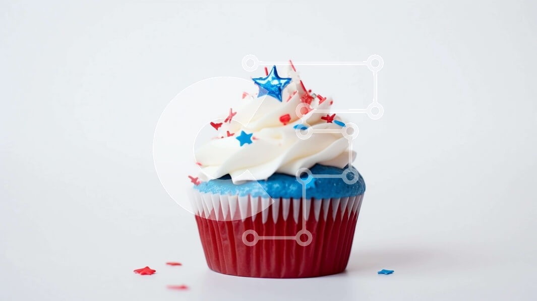 Υπάρχει δυνατότητα προσωποποίησης με δική σας φωτογραφία και προσαρμογής διαστάσεων κατόπιν παραγγελίας. Το συγεκεριμενο puzzle παρουσιαζει Η εικόνα παρουσιάζει ένα μικρό cupcake με κόκκινο, λευκό και μπλε γλάσο και σκορπισμένα γύρω του. Το cupcake φαίνεται να είναι διακοσμημένο για τις 4 Ιουλίου, πιθανώς ως μέρος μιας γιορτής για την Ημέρα της Ανεξαρτησίας. Υπάρχουν πολλά αστέρια διάσπαρτα στην επιφάνεια του τραπ