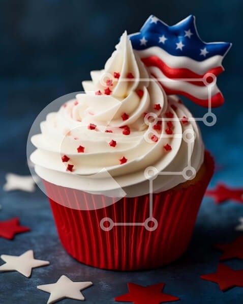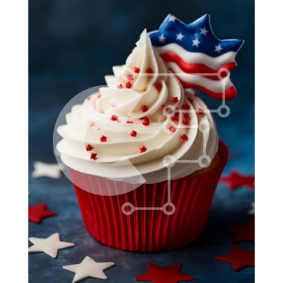 Υπάρχει δυνατότητα προσωποποίησης με δική σας φωτογραφία και προσαρμογής διαστάσεων κατόπιν παραγγελίας. Το συγεκεριμενο puzzle παρουσιαζει Η εικόνα παρουσιάζει ένα cupcake με κόκκινο, λευκό και μπλε γλάσο διακοσμημένο με αμερικανική σημαία. Τοποθετείται στο προσκήνιο της εικόνας, δίπλα σε πολλά διακοσμητικά σε σχήμα αστεριού που είναι διάσπαρτα γύρω από το φόντο. Αυτά τα διακοσμητικά θα μπορούσαν να χρησιμοποιηθο