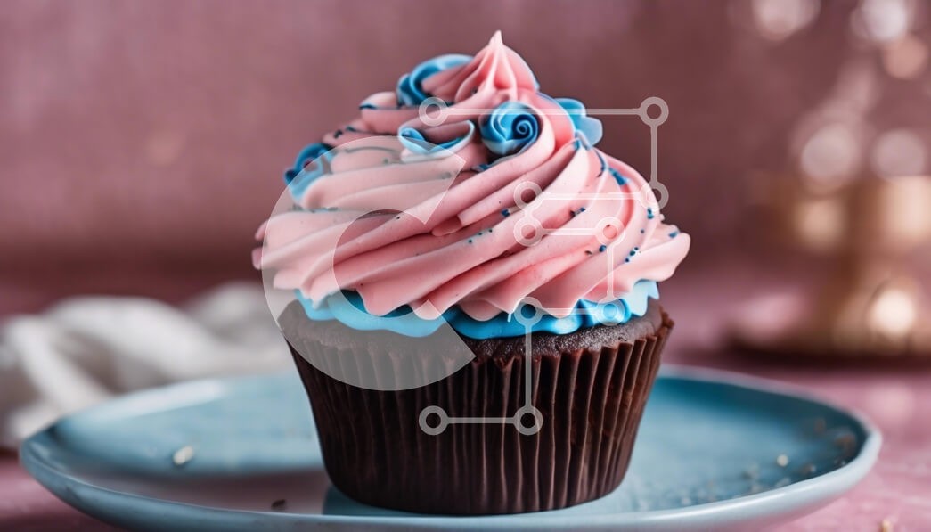 Υπάρχει δυνατότητα προσωποποίησης με δική σας φωτογραφία και προσαρμογής διαστάσεων κατόπιν παραγγελίας. Το συγεκεριμενο puzzle παρουσιαζει Η εικόνα παρουσιάζει ένα όμορφα διακοσμημένο cupcake που κάθεται σε ένα γαλάζιο πιάτο. Το cupcake ολοκληρώνεται με στροβιλισμούς από ροζ και μπλε γλάσο, στολισμένο με μικρά μπλε τριαντάφυλλα από γλάσο. Οι ψεκασμοί και τα μικροσκοπικά διακοσμητικά στοιχεία προσθέτουν στην οπτικ