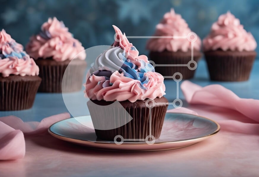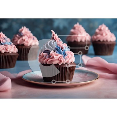 Υπάρχει δυνατότητα προσωποποίησης με δική σας φωτογραφία και προσαρμογής διαστάσεων κατόπιν παραγγελίας. Το συγεκεριμενο puzzle παρουσιαζει Η εικόνα παρουσιάζει ένα απολαυστικό cupcake με ένα στροβιλισμό από ροζ και μπλε γλάσο, κομψά παρουσιασμένο σε ένα πιάτο. Το φόντο είναι απαλά θολό, υπογραμμίζοντας την περίπλοκη διακόσμηση του cupcake. Το cupcake έχει πλούσια σοκολατένια βάση και περιβάλλεται από επιπλέον cup