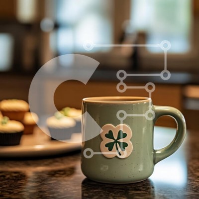 Υπάρχει δυνατότητα προσωποποίησης με δική σας φωτογραφία και προσαρμογής διαστάσεων κατόπιν παραγγελίας. Το συγεκεριμενο puzzle παρουσιαζει Αυτή η εικόνα παρουσιάζει μια γοητευτική πράσινη κούπα στολισμένη με ένα λευκό έμβλημα τριφύλλου, τοποθετημένη σε έναν σκούρο πάγκο. Στο βάθος, διακρίνεται ένα πιάτο με cupcakes με ανοιχτόχρωμες πινελιές και πράσινους τόνους, δημιουργώντας μια απολαυστική και φιλόξενη ατμόσφαι