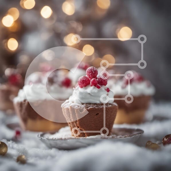 Υπάρχει δυνατότητα προσωποποίησης με δική σας φωτογραφία και προσαρμογής διαστάσεων κατόπιν παραγγελίας. Το συγεκεριμενο puzzle παρουσιαζει Αυτή η εικόνα δείχνει ένα πιάτο γεμάτο με πολλά επιδόρπια, συμπεριλαμβανομένων cupcakes με σαντιγί και κόκκινα μούρα. Το σκηνικό τοποθετείται σε χιονισμένο φόντο, δημιουργώντας μια εορταστική ατμόσφαιρα. Αποτυπώνει την κομψότητα και την απόλαυση ενός πάρτι διακοπών όπου οι επι