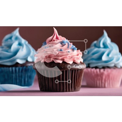 Υπάρχει δυνατότητα προσωποποίησης με δική σας φωτογραφία και προσαρμογής διαστάσεων κατόπιν παραγγελίας. Το συγεκεριμενο puzzle παρουσιαζει Αυτή η εικόνα παρουσιάζει ένα όμορφα διακοσμημένο cupcake στο πρώτο πλάνο, με στροβιλισμούς από ροζ και μπλε παγετό. Το cupcake έχει σκούρο σοκολατί χρώμα, παρέχοντας πλούσια αντίθεση στο παστέλ παγωμένο. Στο βάθος υπάρχουν άλλα δύο cupcakes με παρόμοια σχέδια frosting, ένα ρο