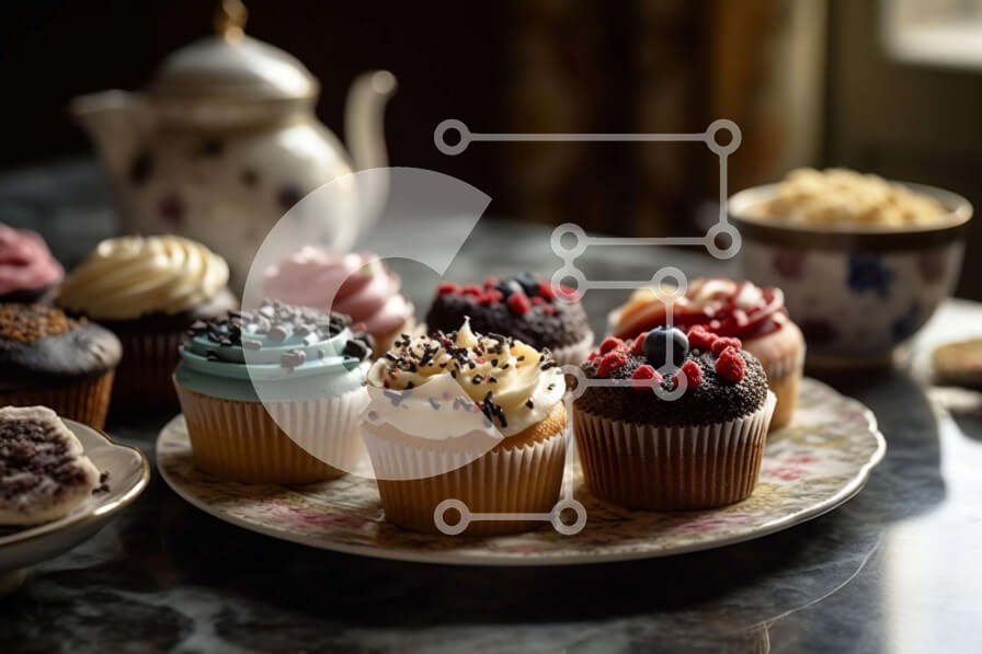 Υπάρχει δυνατότητα προσωποποίησης με δική σας φωτογραφία και προσαρμογής διαστάσεων κατόπιν παραγγελίας. Το συγεκεριμενο puzzle παρουσιαζει Αυτή η εικόνα καταγράφει ένα τραπέζι με διάφορους τύπους cupcakes που κυμαίνονται από γεύσεις σοκολάτας, βανίλιας και φράουλας. Τα cupcakes παρουσιάζονται σε λευκό πιάτο, που περιβάλλονται από τσαγιέρα και φλιτζάνια. Το γλάσο cupcake έχει σχεδιαστεί σε ένα εντυπωσιακό μοτίβο σ