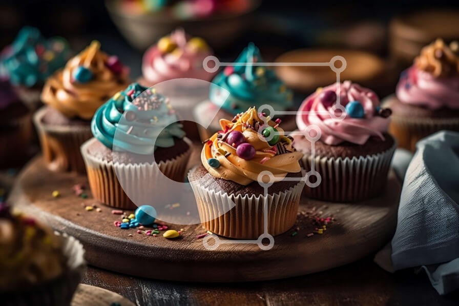 Υπάρχει δυνατότητα προσωποποίησης με δική σας φωτογραφία και προσαρμογής διαστάσεων κατόπιν παραγγελίας. Το συγεκεριμενο puzzle παρουσιαζει Αυτή η εικόνα παρουσιάζει μια ομάδα από πολύχρωμα cupcakes με διαφορετικές γεύσεις και παγάκια τοποθετημένα διακοσμητικά σε μια ξύλινη σανίδα. Τα cupcakes είναι τοποθετημένα με τρόπο που ενισχύει την αισθητική τους γοητεία και η ξύλινη σανίδα προσθέτει μια ρουστίκ πινελιά στην