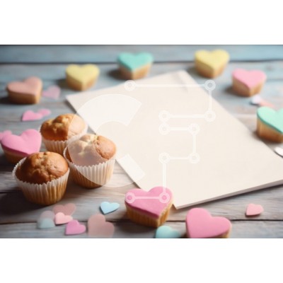 Υπάρχει δυνατότητα προσωποποίησης με δική σας φωτογραφία και προσαρμογής διαστάσεων κατόπιν παραγγελίας. Το συγεκεριμενο puzzle παρουσιαζει Αυτή η εικόνα παρουσιάζει ένα ξύλινο τραπέζι στολισμένο με cupcakes, καρδιές και ένα άδειο φύλλο χαρτιού. Είναι μια απολαυστική σκηνή που θα μπορούσε να χρησιμοποιηθεί για λόγους διακόσμησης, ιδιαίτερα για την Ημέρα του Αγίου Βαλεντίνου ή άλλες ειδικές περιστάσεις. Το σημειωμα