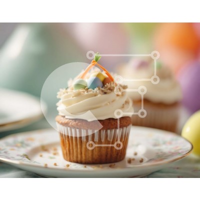 Υπάρχει δυνατότητα προσωποποίησης με δική σας φωτογραφία και προσαρμογής διαστάσεων κατόπιν παραγγελίας. Το συγεκεριμενο puzzle παρουσιαζει Η εικόνα παρουσιάζει ένα λευκό πιάτο με δύο cupcakes, το ένα από τα οποία είναι διακοσμημένο με καρότα και ένα πασχαλινό καλάθι. Πολύχρωμα πασχαλινά αυγά είναι διάσπαρτα γύρω από το πιάτο, προσθέτοντας στη γιορτινή αίσθηση της σκηνής. Ένα μοναδικό puzzle που συνδυάζει ποιότητ