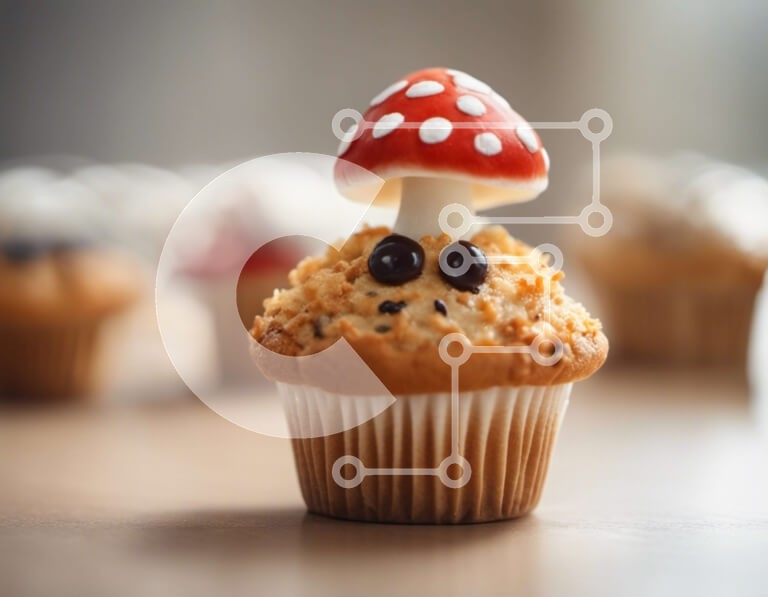 Υπάρχει δυνατότητα προσωποποίησης με δική σας φωτογραφία και προσαρμογής διαστάσεων κατόπιν παραγγελίας. Το συγεκεριμενο puzzle παρουσιαζει Αυτή η εικόνα παρουσιάζει ένα cupcake με διακόσμηση μανιταριών στην κορυφή, που περιβάλλεται από άλλα cupcakes σε ένα τραπέζι. Κάθε cupcake είναι μοναδικό στο σχεδιασμό του και προσθέτει στη συνολική οπτική γοητεία της σκηνής. Είναι μια διασκεδαστική και δημιουργική εμφάνιση ν