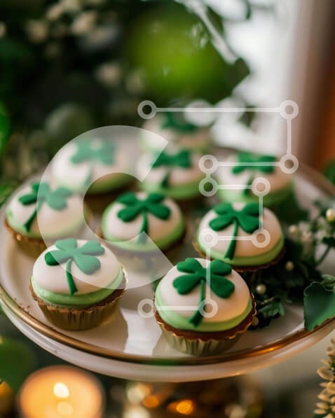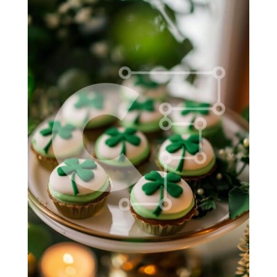 Υπάρχει δυνατότητα προσωποποίησης με δική σας φωτογραφία και προσαρμογής διαστάσεων κατόπιν παραγγελίας. Το συγεκεριμενο puzzle παρουσιαζει Αυτή η εικόνα παρουσιάζει ένα πιάτο με cupcakes διακοσμημένο με πράσινα και λευκά τριφύλλια, ιδανικό για τον εορτασμό της Ημέρας του Αγίου Πατρικίου. Το τραπέζι περιέχει επίσης πολλά κεριά που μπορούν να χρησιμοποιηθούν για να φωτίσουν τον χώρο, μαζί με μια διάταξη από πράσινα