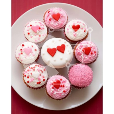 Υπάρχει δυνατότητα προσωποποίησης με δική σας φωτογραφία και προσαρμογής διαστάσεων κατόπιν παραγγελίας. Το συγεκεριμενο puzzle παρουσιαζει Αυτή η εικόνα παρουσιάζει ένα λευκό πιάτο γεμάτο με νόστιμα cupcakes διακοσμημένα με κόκκινες, ροζ και λευκές καρδιές. Τα cupcakes είναι τέλεια για τον εορτασμό της Ημέρας του Αγίου Βαλεντίνου. Υπάρχουν και μπισκότα σε σχήμα καρδιάς σκορπισμένα γύρω από το πιάτο, προσθέτοντας